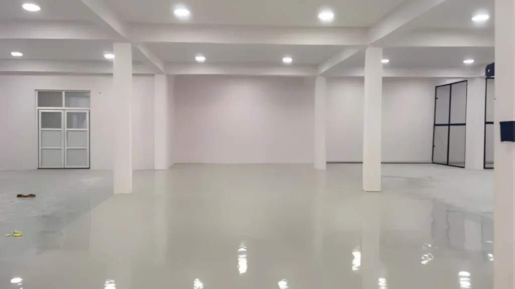 Polished concrete finish using power float machines for smooth, durable, and long-lasting surfaces.